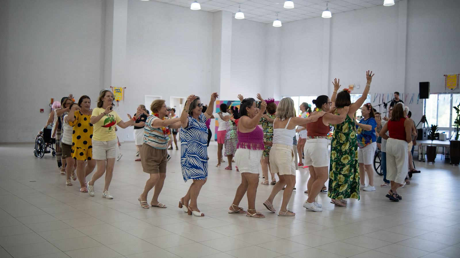 O Parque Diamante +Energia, em Capivari de Baixo, foi palco de momentos de muita diversão nesta quarta-feira (4). O 2º Baile de Carnaval dos Idosos reuniu cerca de 130 pessoas para uma tarde com muita música, fantasias e entretenimento.