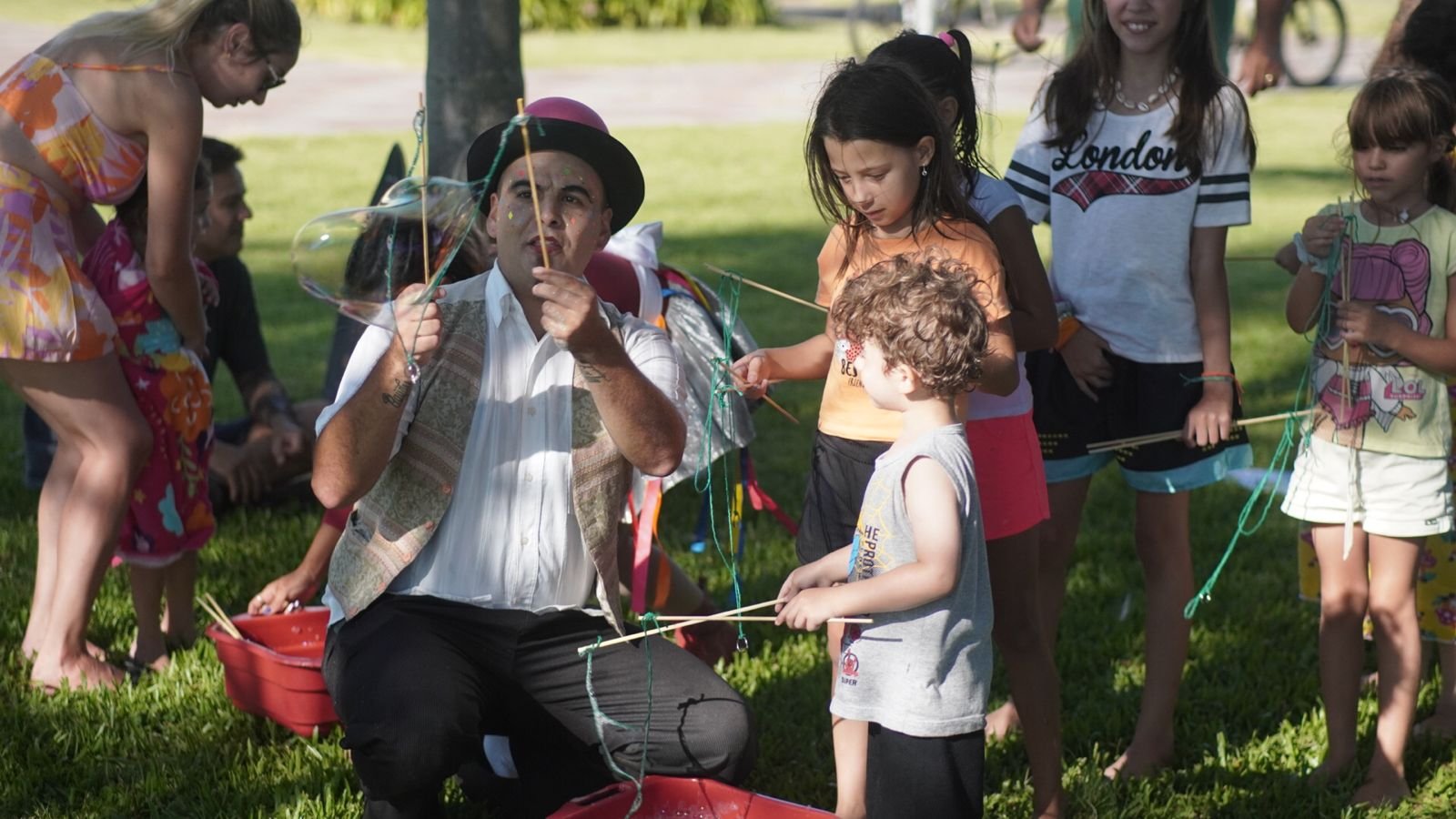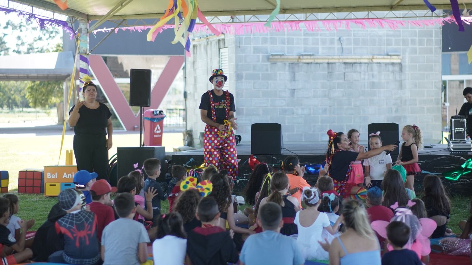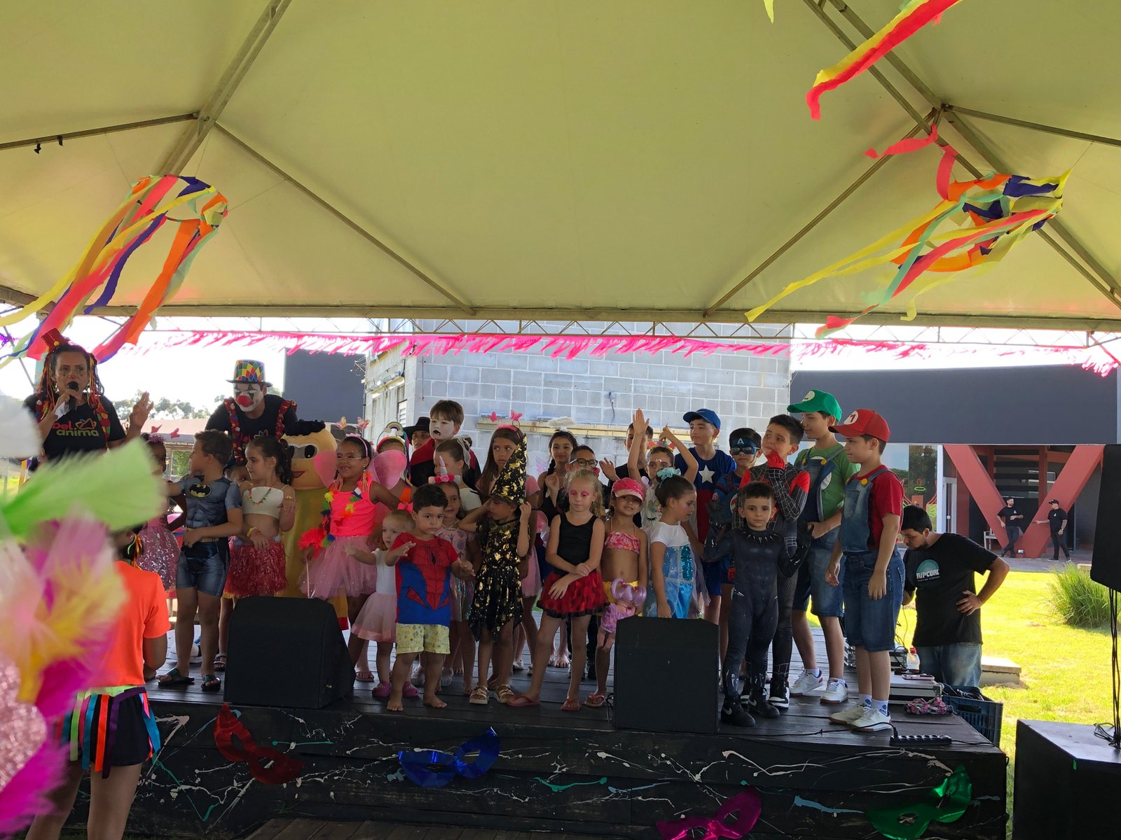 A sobrinha de Andréa e os netos de dona Isolete Nunes Cardoso, moradora de Capivari de Baixo, foram algumas das crianças participantes do concurso de fantasia. A atração rendeu momentos de descontração ao público sob o comando da Bel Anima e os olhares atentos dos jurados do concurso. Com roupas coloridas e inusitadas, as crianças desfilaram no palco montado sob uma tenda instalada no gramado do Parque. “Trouxe meus netos fantasiados dos personagens Luigi e Mario. Está muito divertido. Ano passado também participamos. Sempre frequentamos o Parque”, comentou dona Isolete, ao observar os netos animados com as atrações.