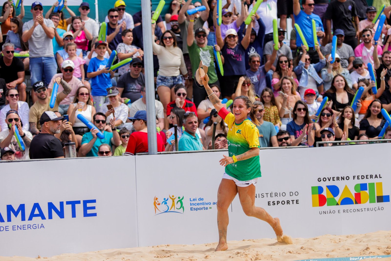 O World FootVolley, mundial de futevôlei sediado no Parque Diamante +Energia, conheceu as duplas campeãs neste domingo (22), em Capivari de Baixo. Lane e Ray e Amaury e Tavinho foram os grandes vencedores do torneio que iniciou na última sexta-feira (20) e teve os jogos decisivos realizados neste domingo (22). Nestes três dias, 1,5 mil passaram pela arena do torneio, que contou ainda com streaming ao vivo todos os dias e transmissão das finais no Sportv.